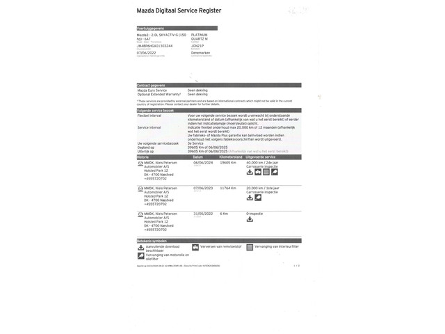 - Onderhoudsboekje (fysiek)